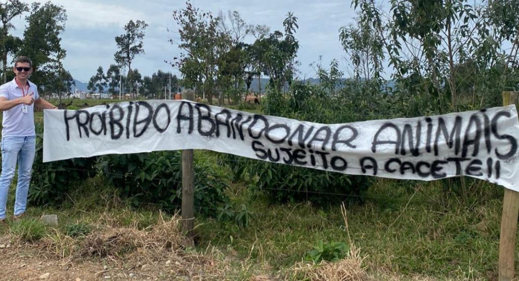 Uma faixa contendo a mensagem "Proibido abandonar animais: sujeito a cacete" foi pendurada em um terreno localizado na avenida Emília Ramos, em Tijucas. A faixa, que ameaça punir aqueles que abandonam animais no local, surgiu na última quinta-feira, 7 de setembro. O ato chama a atenção para os crescentes problemas relacionados ao abandono de animais no município.