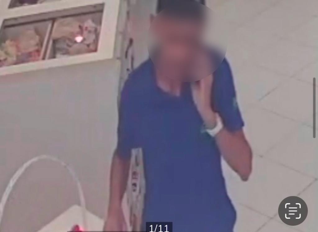 Ele ainda chega a pegar outro produto nas mãos, mas sai do local logo depois, ainda supostamente falando ao celular.