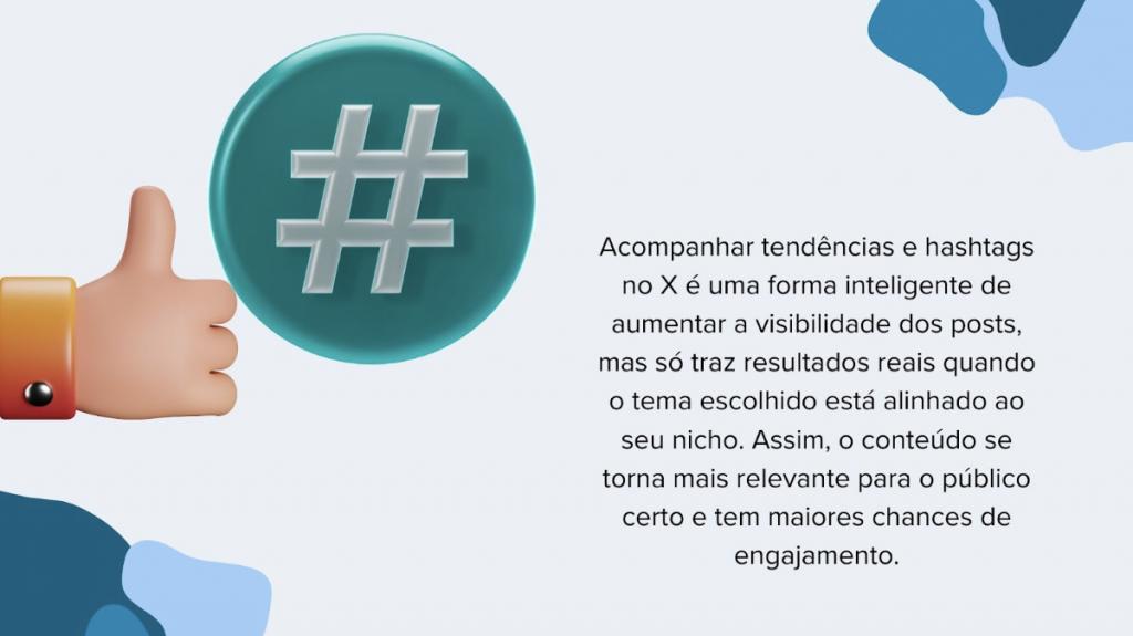 Os “Assuntos do Momento” no X (comumente conhecidos como Trending Topics) consiste numa lista com cerca de 20 dos tópicos mais comentados na plataforma naquele momento. Nunca é uma má ideia conferir essa lista e criar um post relacionado a um dos tópicos presentes nela.