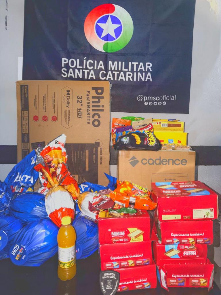 A ocorrência foi inicialmente repassada pela Guarda Municipal às equipes da PM, que passaram a monitorar um veículo suspeito. O automóvel foi acompanhado até a entrada de Balneário Camboriú, quando as informações foram repassadas à guarnição local de serviço. A abordagem foi realizada no bairro da Barra, onde os policiais localizaram parte dos produtos alimentícios furtados no interior do veículo.