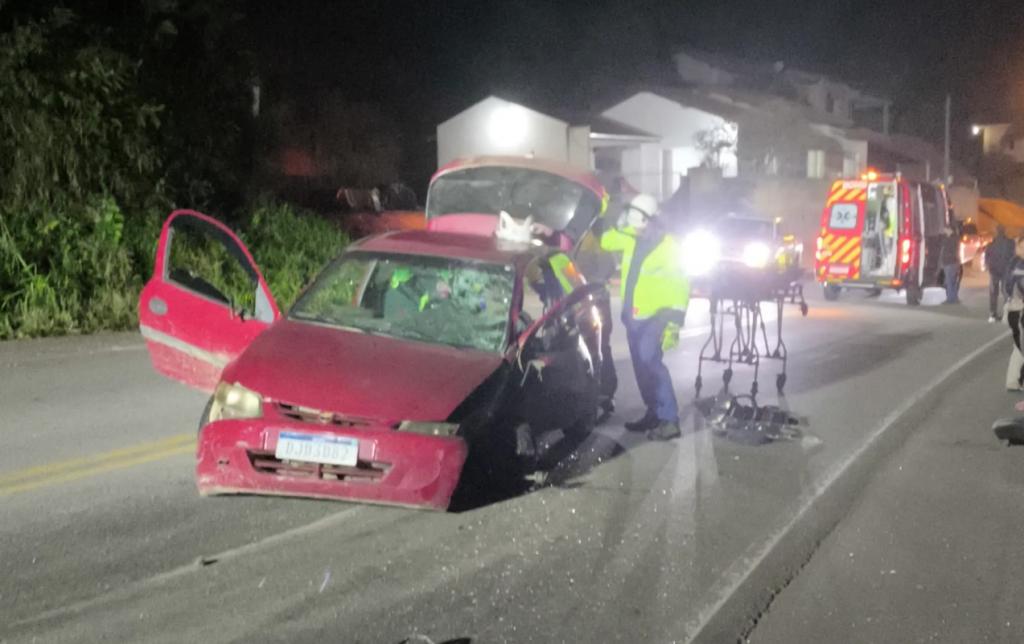 Um grave acidente de trânsito foi registrado na noite desta quinta-feira, 10 de julho, na rodovia SC-108, no bairro Colônia Nova Itália. A colisão envolveu um Chevrolet Celta e um Jeep Renegade, mobilizando equipes do Corpo de Bombeiros, SAMU, Polícia Militar Rodoviária e Polícia Militar local.