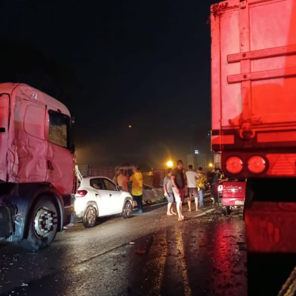 O Corpo de Bombeiros Militar constatou que a colisão envolveu três veículos de grande porte e dois automóveis . A dinâmica do impacto provocou consequências severas a uma das carretas: uma carga de bobinas se desprendeu da carroceria e, com a força da colisão, deslocou-se sobre o eixo dianteiro do veículo, arrancando completamente a cabine.