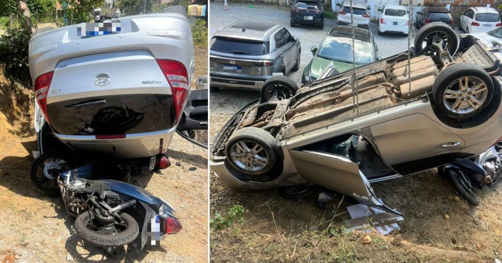 O veículo envolvido, um Hyundai i30 prata, capotou e, durante a perda de controle, atingiu duas motocicletas que estavam estacionadas no local, uma Honda Biz e uma Honda CG 150. Ao chegarem ao local, os agentes de trânsito encontraram o automóvel já tombado na área do estacionamento.