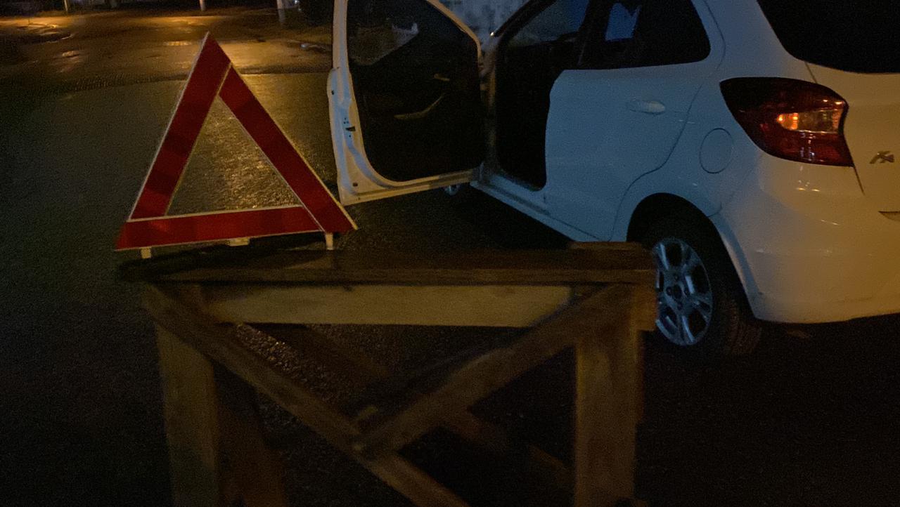 A perícia está sendo aguardada. O carro que foi usado pelo suspeito esta na rua com algumas marcas. Ele foi conduzido ao hospital e seu quadro clínico é considerável estavel.