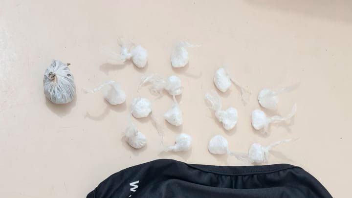 Ele foi abordado, 14 buchas de cocaína e uma porção de maconha, todas prontas para venda foram localizadas e apreendidas. O rapaz alegou que havia acabado de pegar o entorpecente para vender.