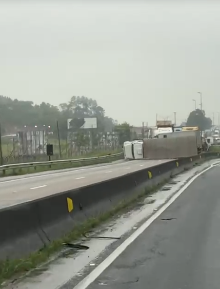 Um caminhão tombou e bloqueou totalmente a pista Norte da BR-101 na altura do km 168, em Tijucas, na manhã desta terça-feira, dia 02 de dezembro. Segundo a Polícia Rodoviária Federal (PRF), o fluxo precisou ser desviado para o acostamento, o que provocou congestionamento e redução significativa de velocidade no trecho.