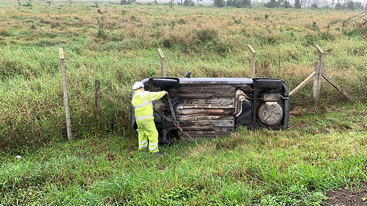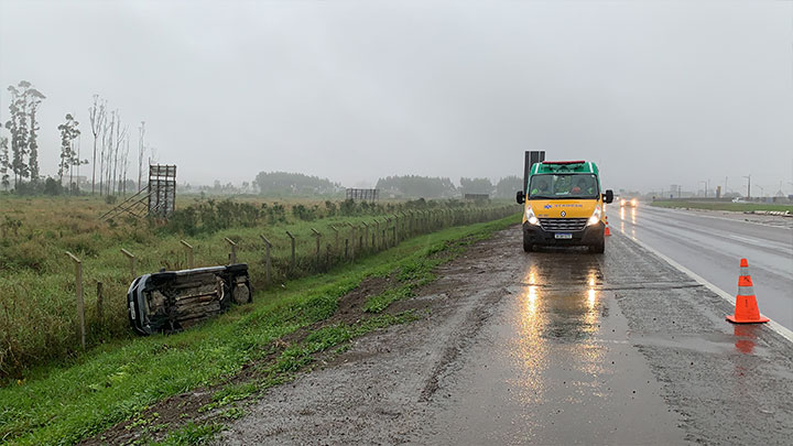 Um verdadeiro susto, que por sorte, não terminou em algo mais grave. Um capotamento foi registrado no início da tarde chuvosa desta quarta-feira, 08 de setembro, na BR-101.