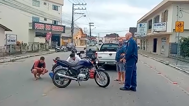 Com o impacto, a vítima ficou caída no chão com a moto prensando a perna no asfalto. Populares que passavam pelo local auxiliaram na retirada do veículo.
