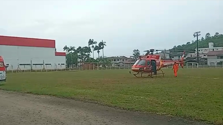 Equipes de socorro do Helicóptero Arcanjo, do Corpo de Bombeiros, pousaram em um campo de futebol, em São João Batista, para realizar a transferência de uma paciente a um hospital da Capital, na manhã desta terça-feira, 04 de janeiro.