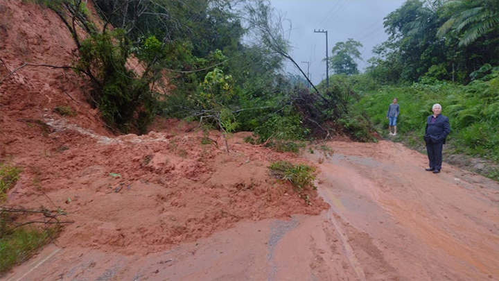 De acordo com a Polícia Militar Rodoviária, a SC-410, em Canelinha, teve o trânsito parcialmente interrompido por uma movimentação de massa. O barro ficou sobre a pista de rolamento, impedindo a passagem de veículos.