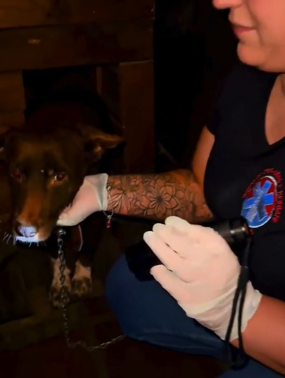 O tutor do cão, que não estava no local no momento do resgate, foi identificado e responderá criminalmente pelo crime de maus-tratos, conforme previsto na legislação. Diante da gravidade da situação, a Polícia Militar foi acionada para dar apoio à operação e garantir a segurança no local. O cão foi resgatado e encaminhado para receber os cuidados veterinários necessários.