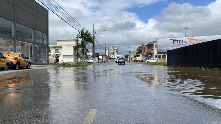 Já a rua Manoel Nahum de Brito, que liga a Antônio Bayer à Avenida Bayer Filho, continua com pontos de alagamento, mas não impede que os carros cruzem o trecho.