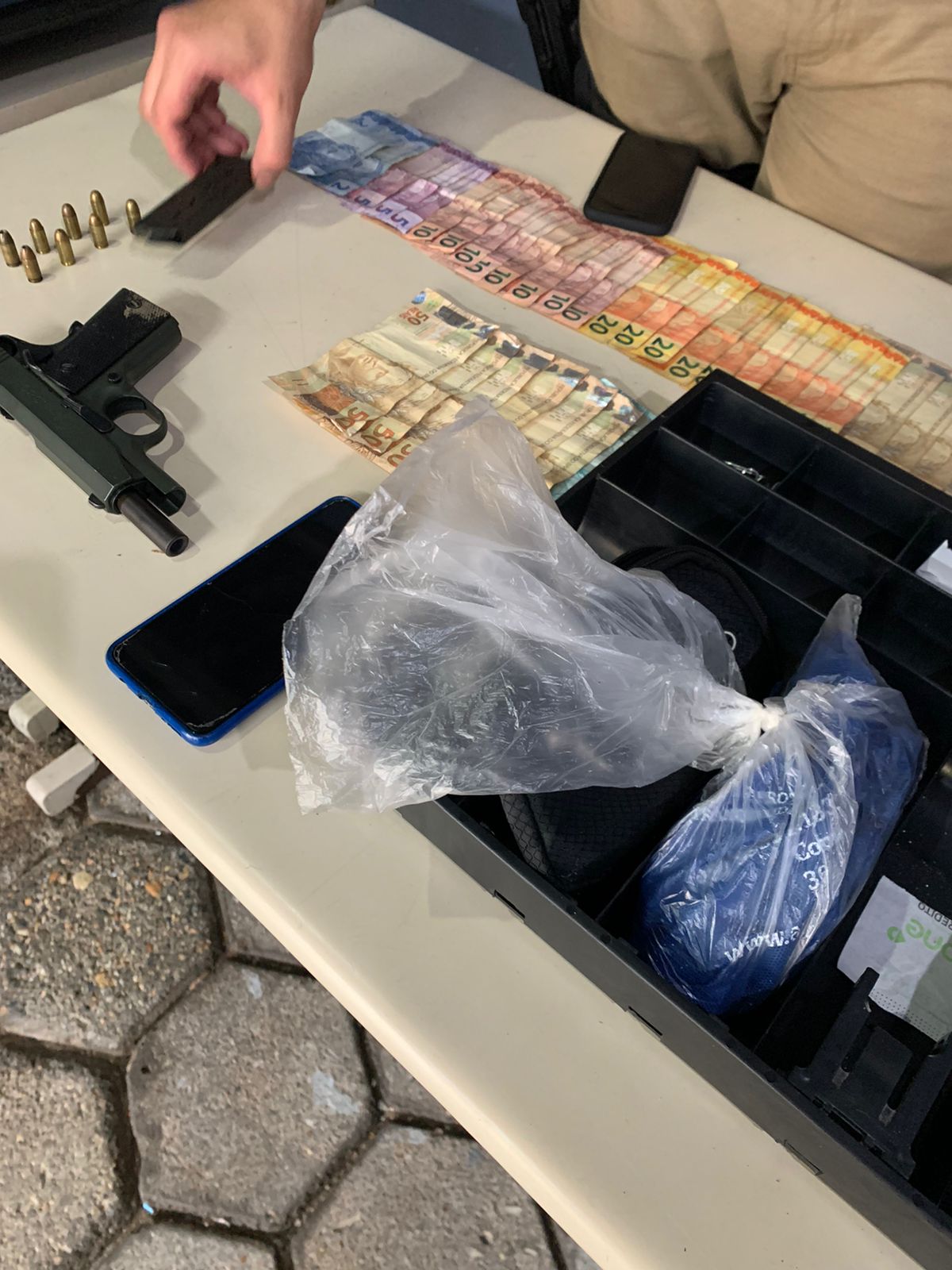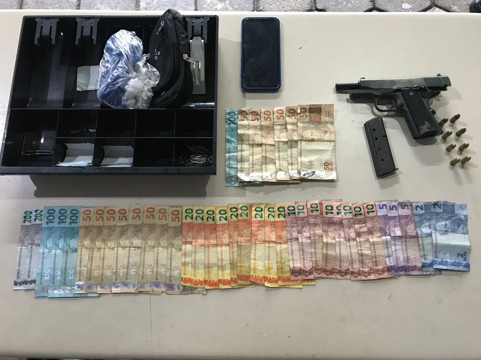 Dois dos envolvidos foram flagrados no terraço de um prédio. Com eles foi encontrado celular e dinheiro. O terceiro foi detido pouco depois de invadir uma residência e feito ameaça aos moradores. Ele, inclusive, terido pedido para tomar banho e trocar de roupa no local. Uma arma de fogo estava em sua posse.