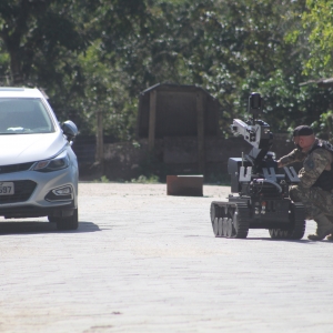 Após a avaliação feita com uso do robô, os especialistas decidiram abrir o carro. Com uso de um machado, um policial quebrou o vidro lateral e conseguiu fazer a remoção do artefato usando um braço mecânico. O momento foi acompanhado por vários moradores, que assistiram atentamente aos trabalhos policiais.