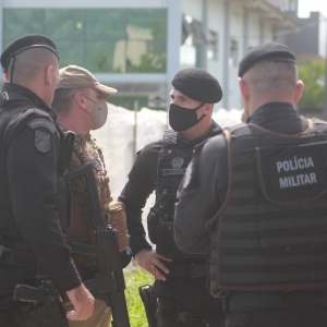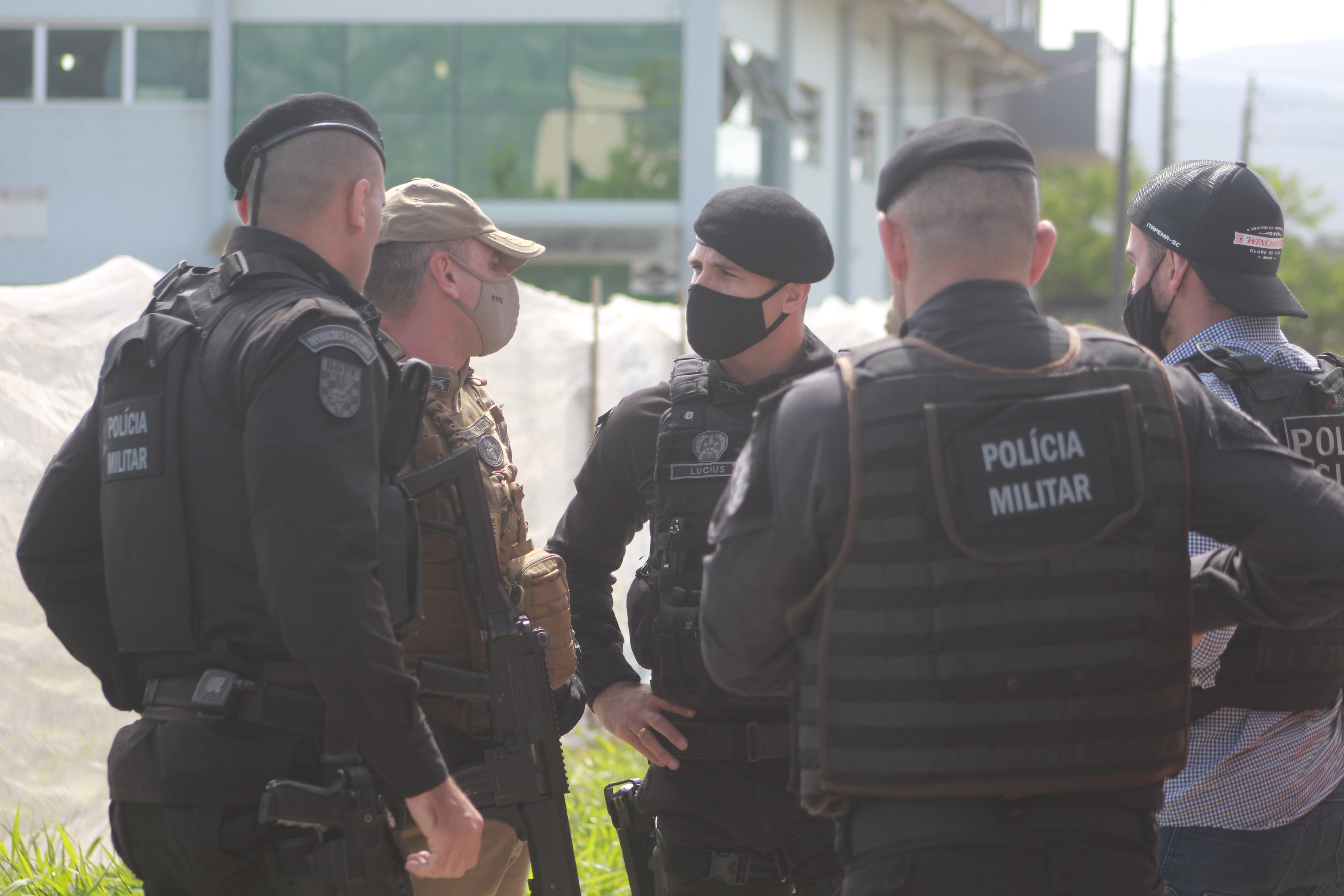 Minutos após a fuga dos autores, o GM/Cruze, com registro de furto em Lages/SC, foi localizado em uma rua do bairro Jardim Dourado, a pouco mais de um quilômetro do estabelecimento. Em seu interior, os agentes encontraram um material que poderia ser uma bomba.