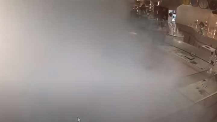 A joalheria fica no Centro de Brusque. De acordo com a gravação inicialmente divulgada, que mostra a parte de fora do comércio, um Fiat/Pálio Weekend de cor cinza chumbo estaciona em frente ao local, um homem de roupas e boné pretos sai do veículo e entra na loja.