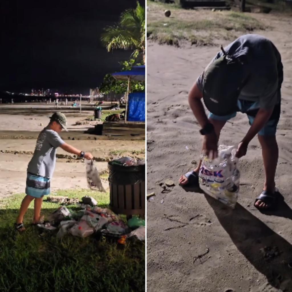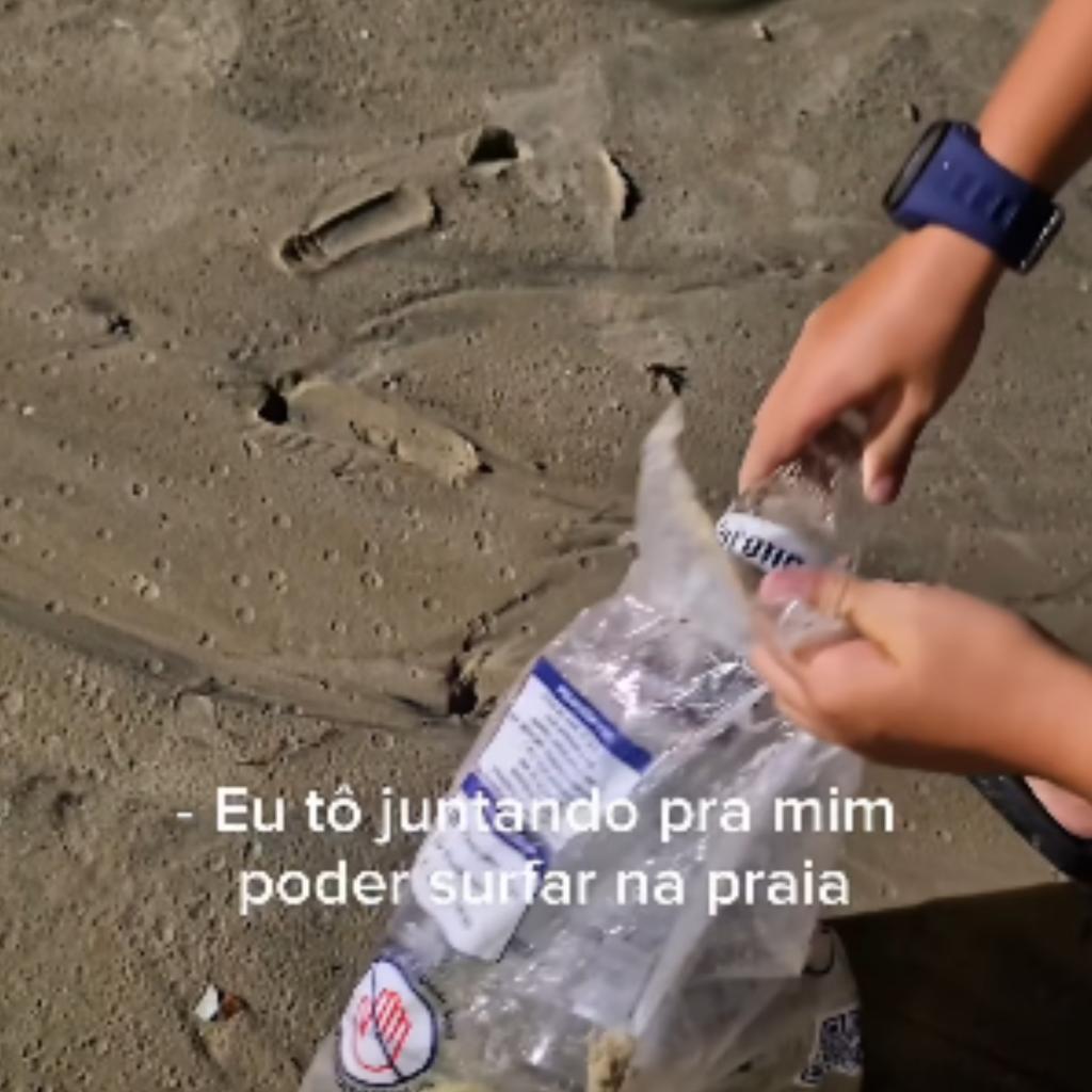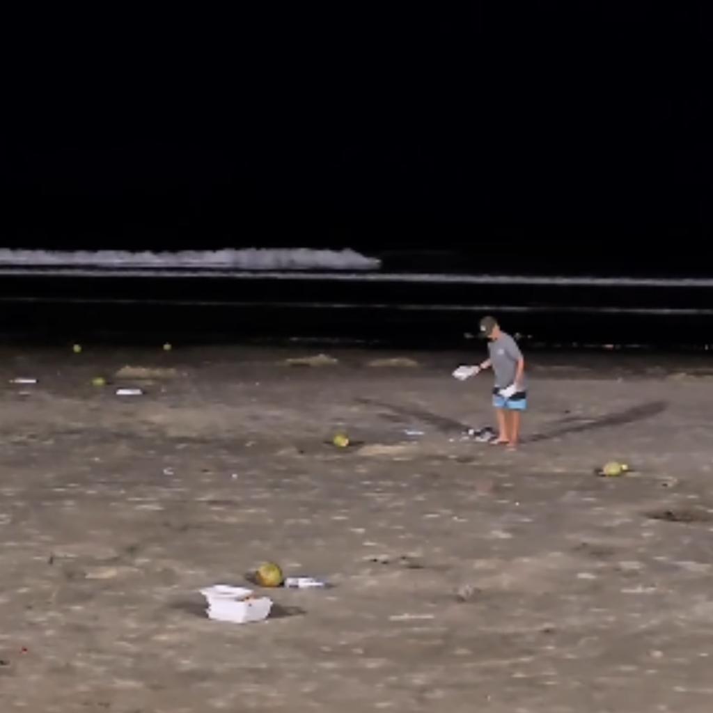 Sem chamar atenção ou promover qualquer tipo de ação organizada, o menino percorreu a praia recolhendo lixo deixado por frequentadores durante a noite de Réveillon. Garrafas, embalagens e diversos outros materiais foram retirados da areia e encaminhados para o descarte adequado.