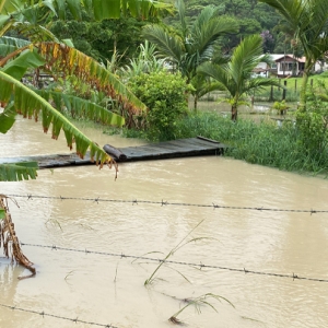 Cercada por plantações, o alagamento cobriu a via com cerca de 30 centímetros. Um caminhão caçamba conseguiu cruzar a área, mas enfrentou dificuldades devido ao acúmulo de água e a grande quantidade de buracos formados no chão.