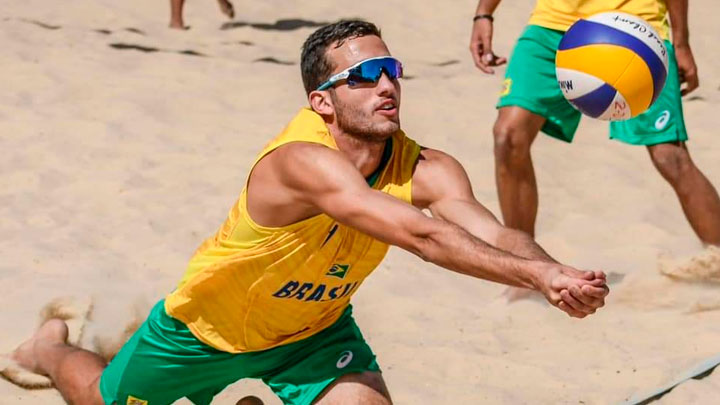 Com vaga garantida para o Mundial de Vôlei Sub-19 que acontecerá na Tailândia, os atletas do vôlei de praia de Itapema, Nicolas Capretti Schosler e Samuel Bello, comemoram mais uma vitória.