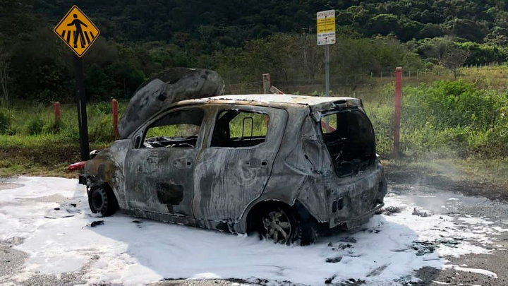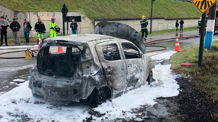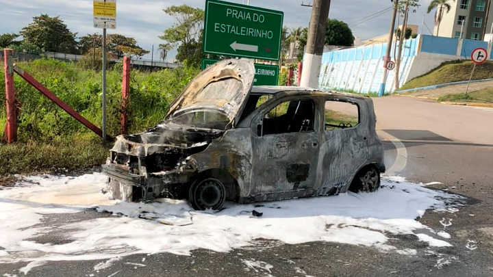 O carro que pegou fogo durante a manhã desta segunda-feira, 20 de junho, em Itapema, foi completamente destruído pelas chamas. Equipes do Corpo de Bombeiros chegaram a atuar no combate, mas o veículo foi rapidamente consumido.