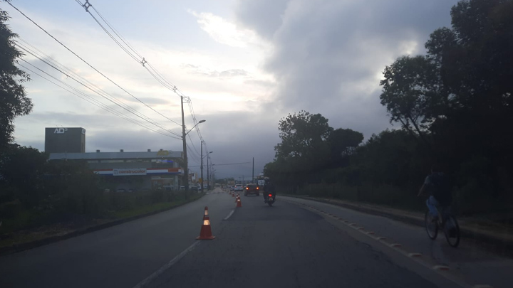 As faixas da Avenida Carlos Humberto Ternes, a popular P2, teve que ser dividida em mão dupla. Portanto, quem sai do bairro Joáia em direção ao Centro terá que utilizar o desvio.