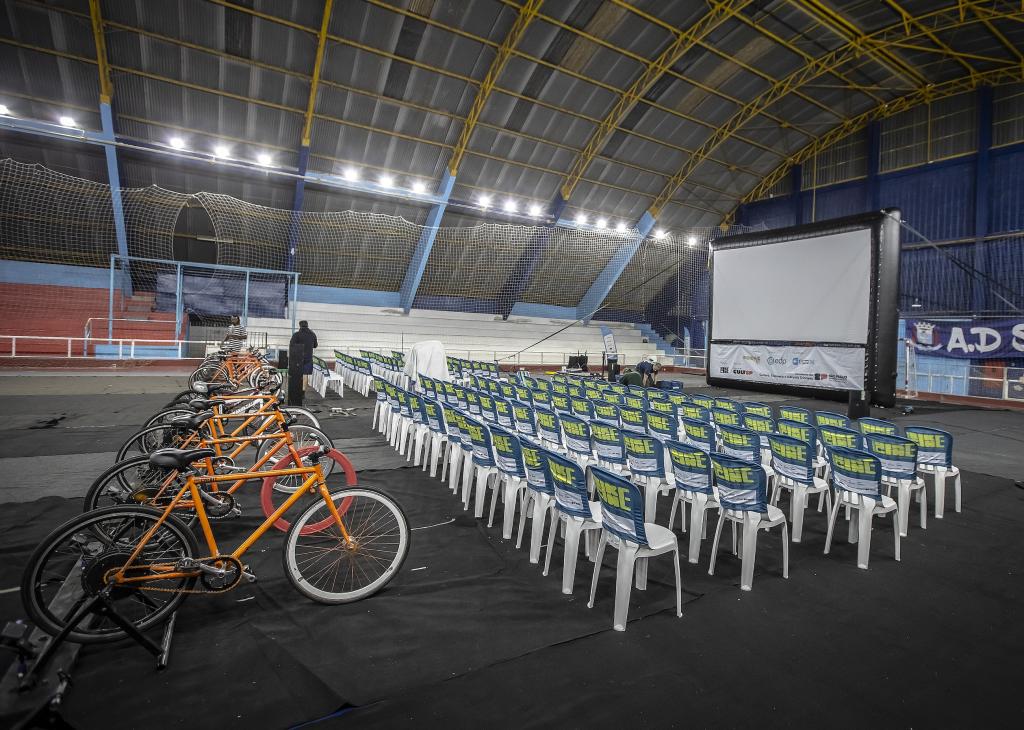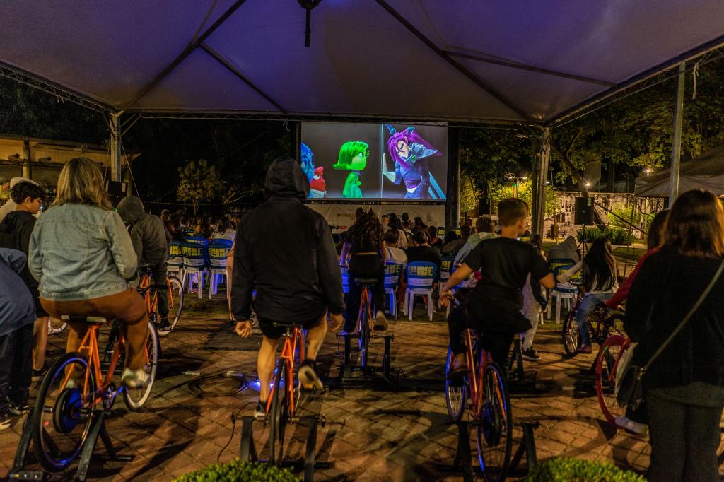 O público poderá assistir aos filmes sentado na plateia com 150 cadeiras ou pedalando em uma das 16 estações de geração de energia, 12 bicicletas fixas e quatro bases para quem preferir usar a própria bicicleta. Também haverá o “pedal de mão”, acessível para crianças, idosos e pessoas com mobilidade reduzida.