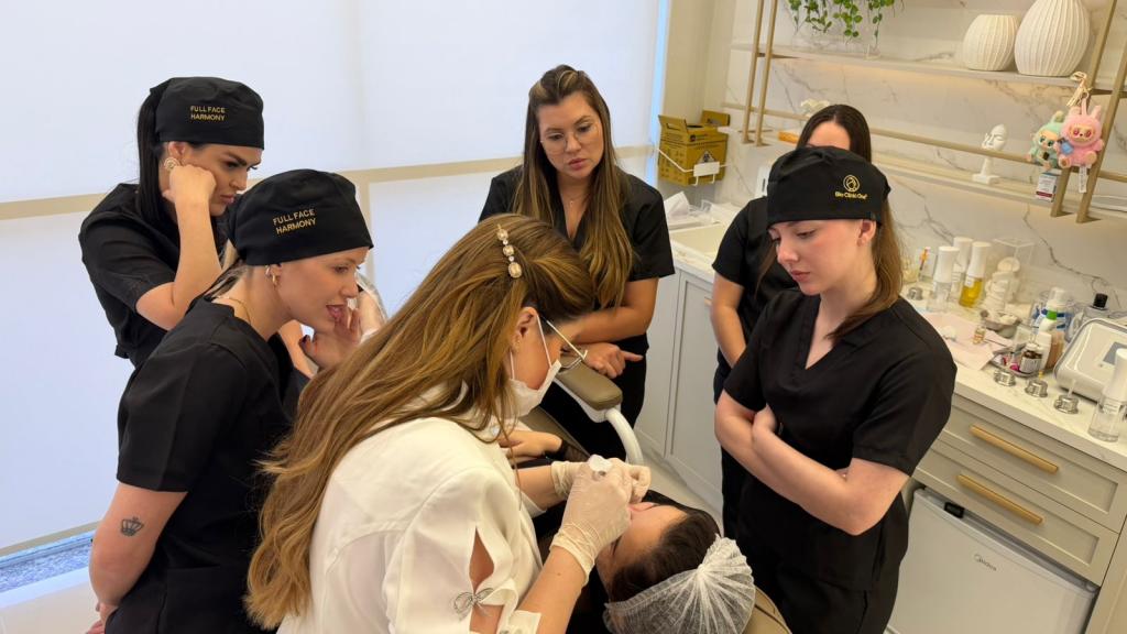 Além da rotina de atendimentos em clínica, a especialista tem dedicado parte da agenda à formação de profissionais que buscam aperfeiçoamento técnico e atualização científica. As aulas incluem observação e prática, sempre com foco em segurança, anatomia facial, precisão de aplicação e construção de resultado harmonioso.