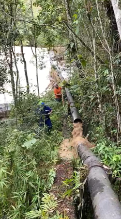 Na tarde desta sexta-feira, 02 de dezembro, o Serviço de Infraestrutura e Abastecimento de Água Municipal (Sisam) informou que as equipes já conseguiram destrancar parte da tubulação que leva a água bruta até a Estação de Tratamento.