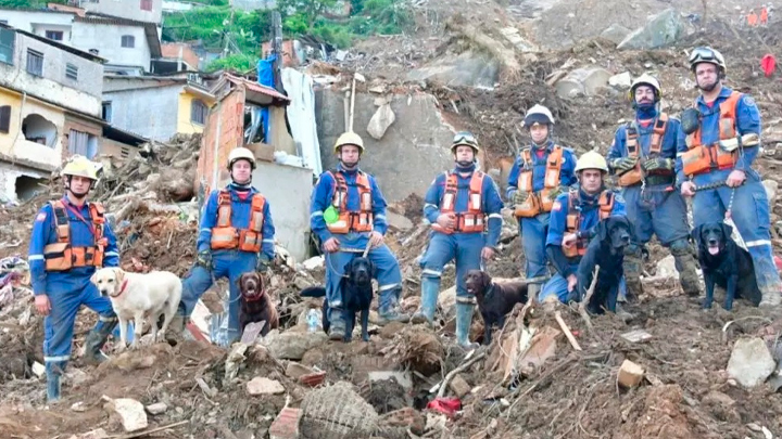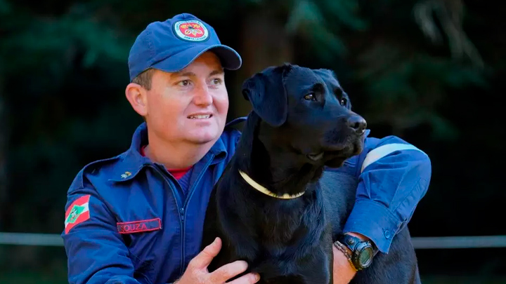 O bombeiro militar Carlos Alexandre de Souza e a cadela Zaara, ambos do Corpo de Bombeiros de Brusque, estão entre os membros de Santa Catarina enviados para auxiliar nas buscas pelas vítimas da tragédia de Petrópolis, no Rio de Janeiro.
