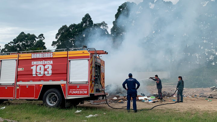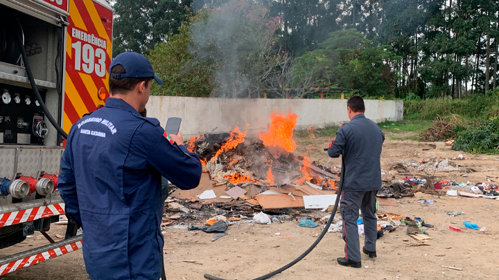 A informação parece repetida, mas não é. Bombeiros de Tijucas foram novamente acionados para conter um incêndio em materiais descartados de forma irregular, na entrada da rua Osvaldo Argino Cordeiro, no loteamento Jardim Progresso.