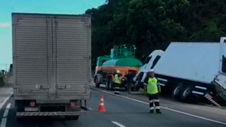 De acordo com a Arteris Autopista Litoral Sul, uma carreta tombou no quilômetro 174. Por isso, as duas pistas precisaram ser totalmente interditadas para que o veículo de carga fosse destombado. O bloqueio provocou filas superiores a 7 quilômetros. Ainda não há previsão para liberação total das pistas.