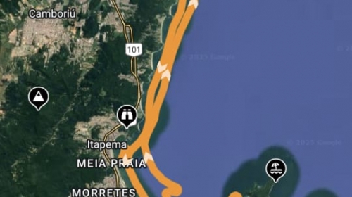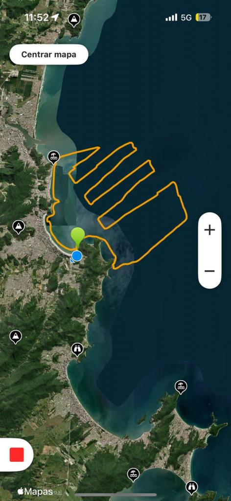 O helicóptero Arcanjo-03 realizou voos de patrulhamento partindo da região de Navegantes até a Baía de Porto Belo, retornando em varredura aérea ao longo de um percurso aproximado de 78 quilômetros, com cerca de 40 minutos de voo.