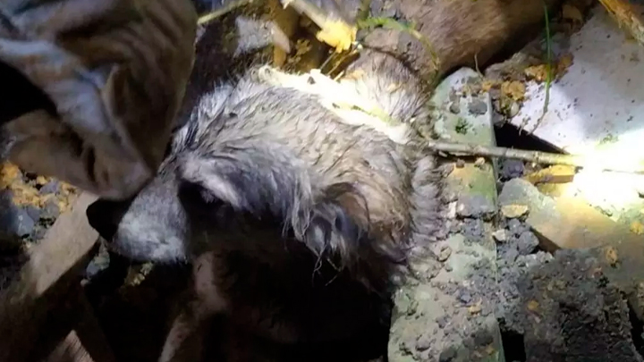 Por volta das 23h40, o Corpo de Bombeiros foi acionado para realizar o resgate do animal. O corpo do cão ficou embaixo dos escombros, sendo possível ver somente a sua cabeça.