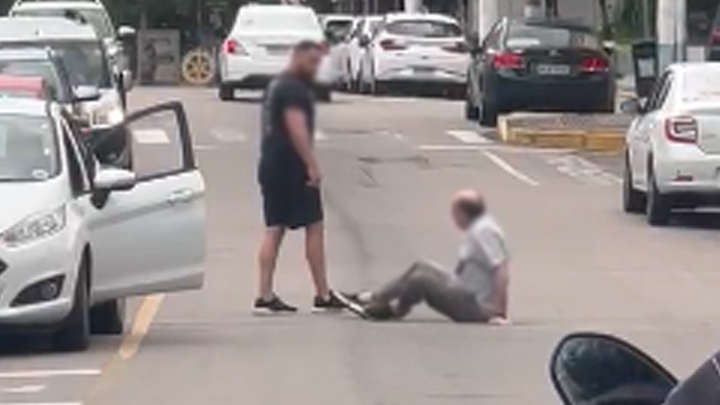 A gravação foi registrada por populares que registraram a agressão. A vítima aparece caída em meio ao asfalto. No início, o autor aplica um chute no rosto do idoso, que se levanta sozinho e entra no carro, já com marcas de sangue na face.