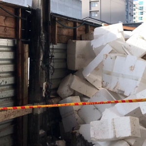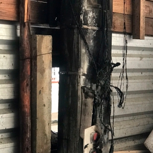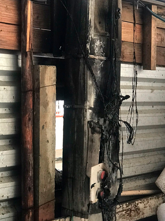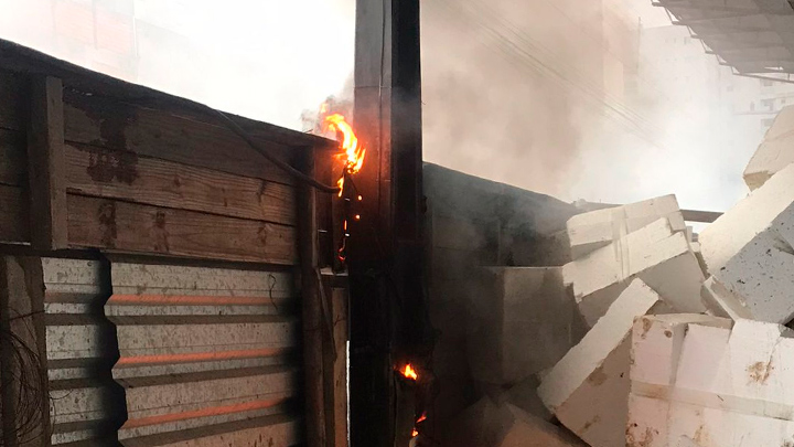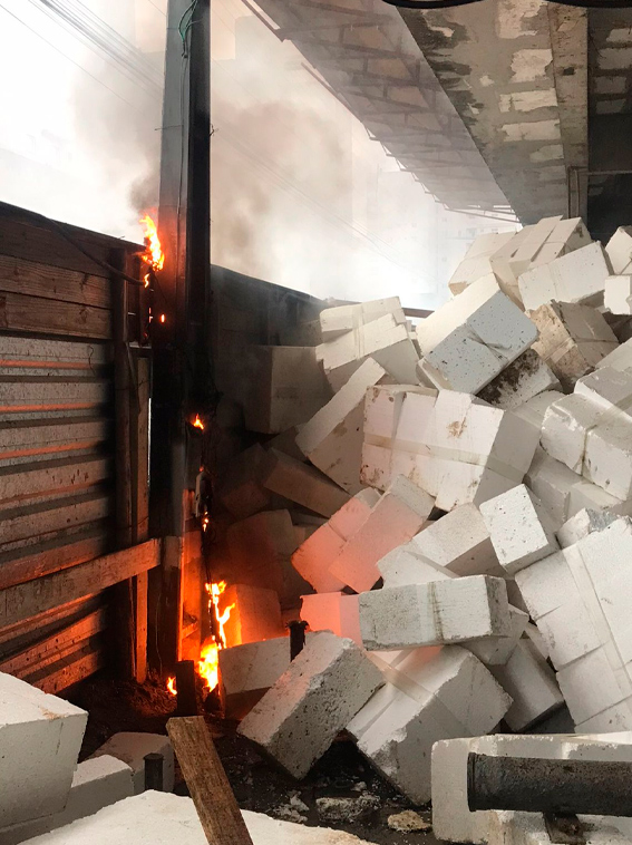 No local, os socorristas encontraram a caixa de energia pegando fogo e já avançando para uma pilha de isopor. Uma rápida ação, com uso de extintor, conseguiu apagar totalmente as chamas e impedir ainda mais o avanço.