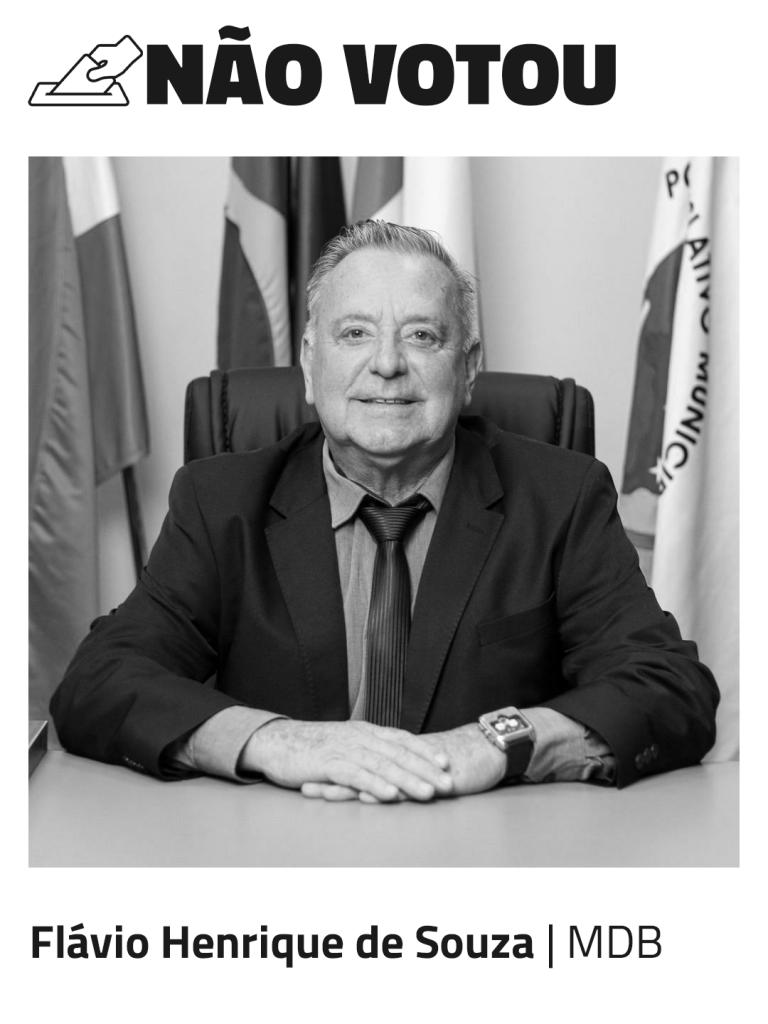 Flávio Henrique de Souza | MDB | O presidente da Câmara de Vereadores, em regra, não vota nas matérias porque sua função principal durante a sessão é conduzir os trabalhos, manter a ordem e garantir o cumprimento do regimento interno. Essa regra existe para manter a imparcialidade na condução da sessão.