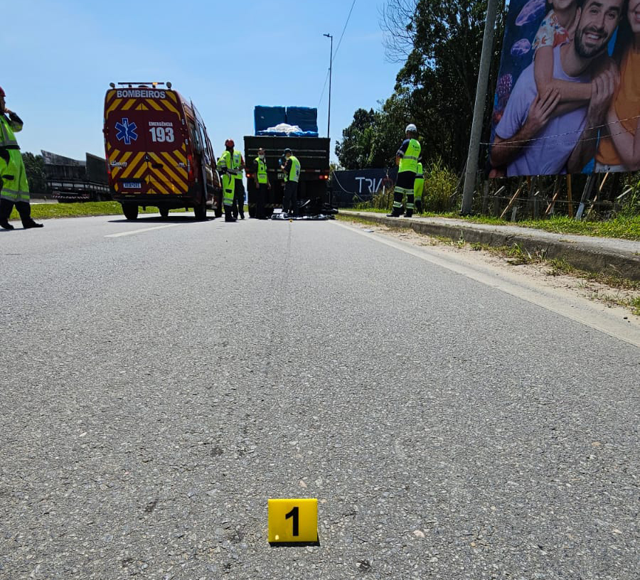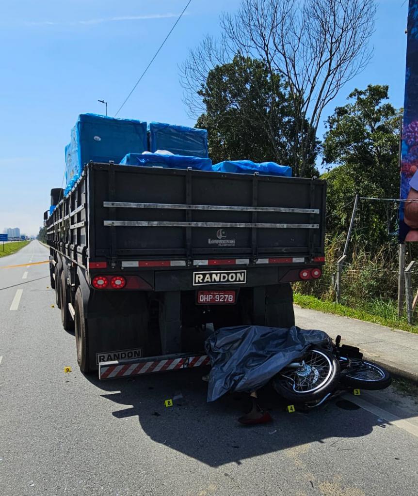 Uma colisão traseira entre moto e caminhão terminou em morte no início da tarde desta segunda-feira, 18 de setembro, em Porto Belo.