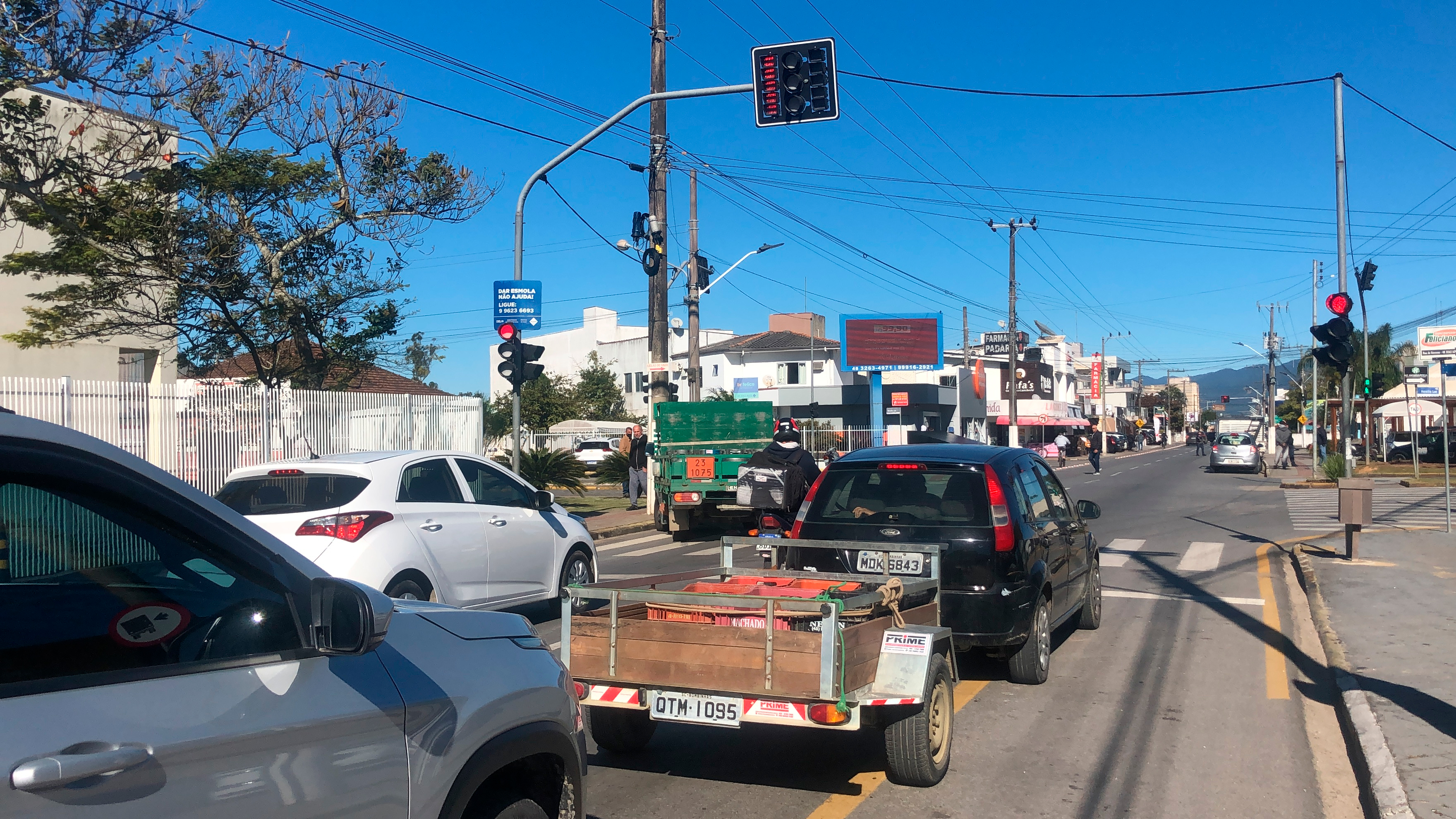 Um acidente envolvendo três veículos foi registrado na Avenida Bayer Filho, na região central de Tijucas, durante a manhã desta quinta-feira, 29 de julho. A colisão ocorreu na faixa de pedestres do semáforo em frente ao colégio Cruz e Souza, por volta das 10h.