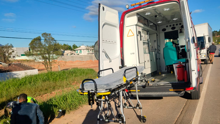 Um acidente deixou um casal de motociclistas feridos na manhã desta quinta-feira, 29 de abril, em Canelinha. A colisão foi registrada na travessia da rua Rosinha Laus com a rodovia SC-410, na região central do município.