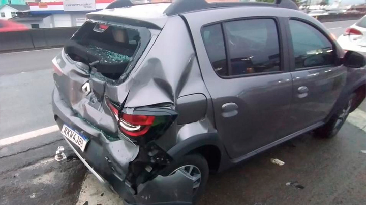 Um Renault/Sandero foi atingido diretamente na traseira pelo caminhão e sofreu mais estragos. Ele colidiu atrás de um Hyundai/HB20 que, por sua vez, acertou um VW/Gol. Todos os automóveis envolvidos ficaram danificados.