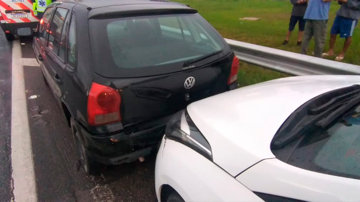 O motorista de um dos carros sofreu ferimentos leves e recebeu os primeiros socorros no local. Houve interdição do acostamento e foi registrado pouco mais de um quilômetro de lentidão no tráfego.