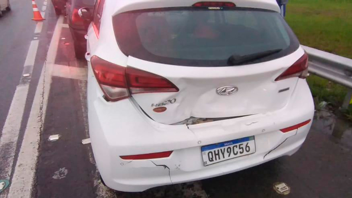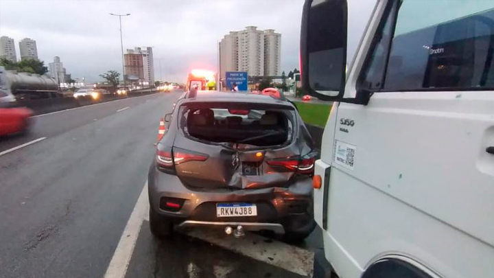 De acordo com a empresa que administra a rodovia, o motorista do veículo de carga teve que usar a pista da direita para desviar de outro caminhão. Com a manobra, ele acabou atingindo os carros que estavam parados no acesso.