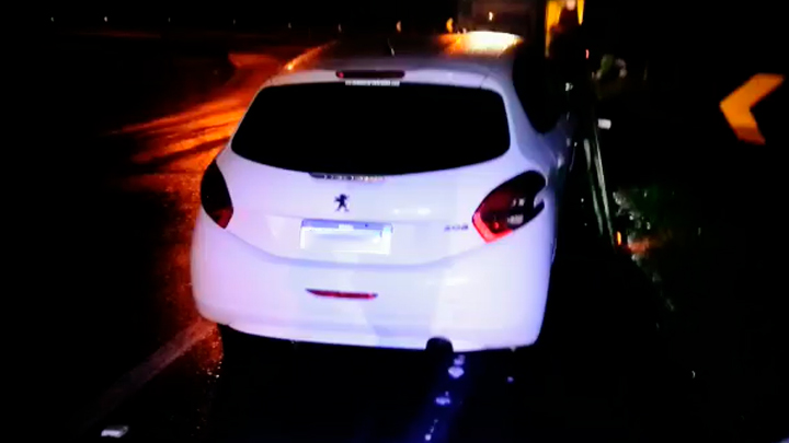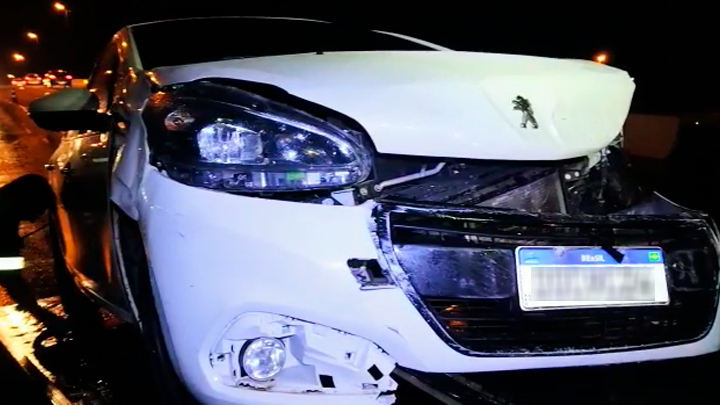 De acordo com a equipe da Arteris Autopista Litoral Sul, o veículo Peugeot/208, com placas de Belo Horizonte/MG, foi abandonado no local logo após o choque com o concreto. O condutor não foi localizado nas proximidades.