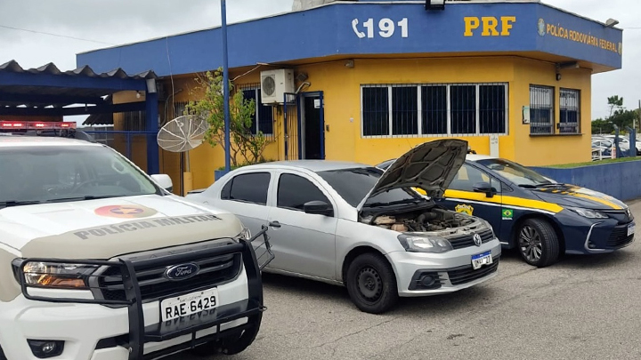 Os policiais rodoviários federais agiram com o apoio de policiais militares, para recuperar o VW/Voyage furtado.