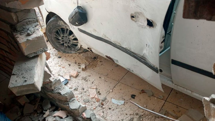 Apesar de o impacto da colisão ter arrancado até um tubo de concreto antes do carro chocar-se contra a parede, a mulher não sofreu ferimentos.