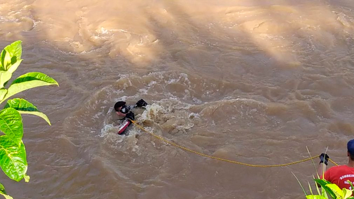 Não foi possível garantir ou descartar se o corpo está no interior do automóvel, justamente por estar debaixo d’água. O local segue isolado enquanto as equipes realizam os trabalhos.