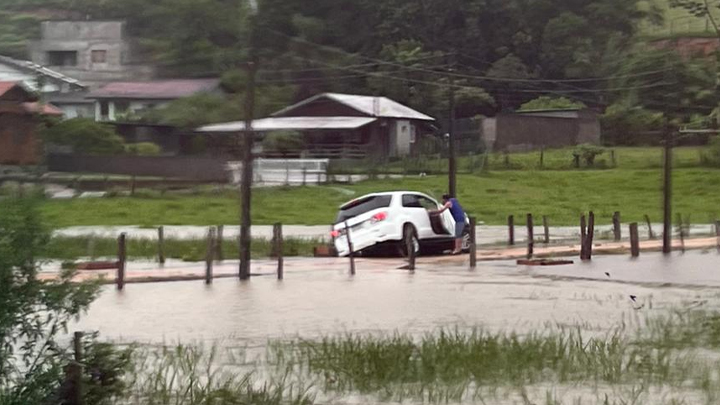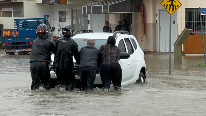 Registros como esses foram feitos em Tijucas e Porto Belo, por internautas do VipSocial. Em um deles, na região central da cidade, populares precisaram ajudar o condutor a retirar o automóvel da área crítica.