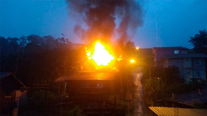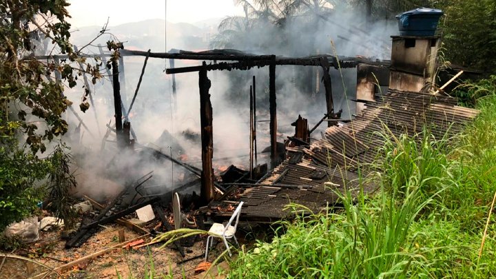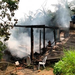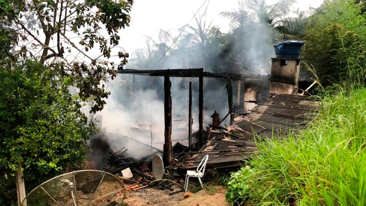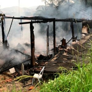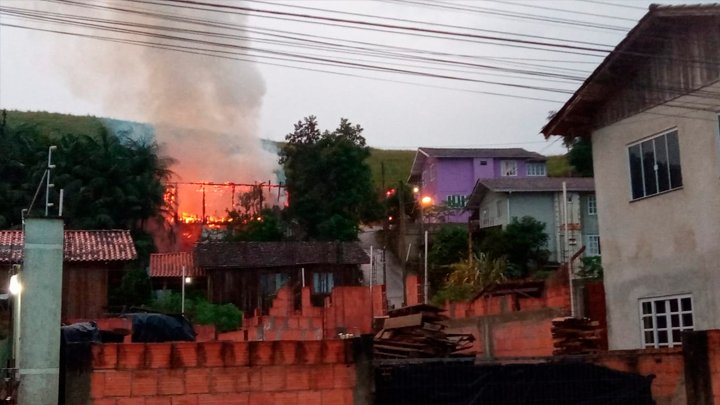 Uma residência foi completamente destruída por um incêndio, durante a manhã desta segunda-feira, 22 de março, em São João Batista. O caso ocorreu na rua Caetana Loz Marcelino, no bairro Carmelo.