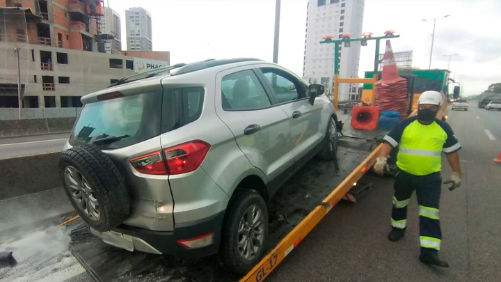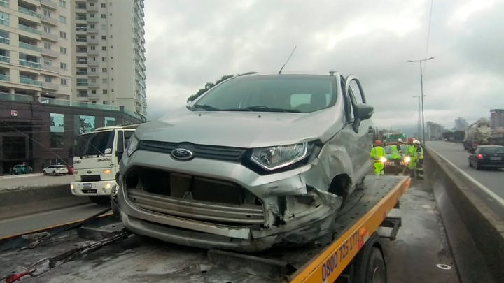 Com a colisão, uma das rodas da caminhonete foi arrancada, o carro girou e acertou a mureta. O Corpo de Bombeiros e as equipes de resgate da Autopista Litoral Sul foram acionadas e prestaram os primeiros atendimentos às vítimas ainda no local.