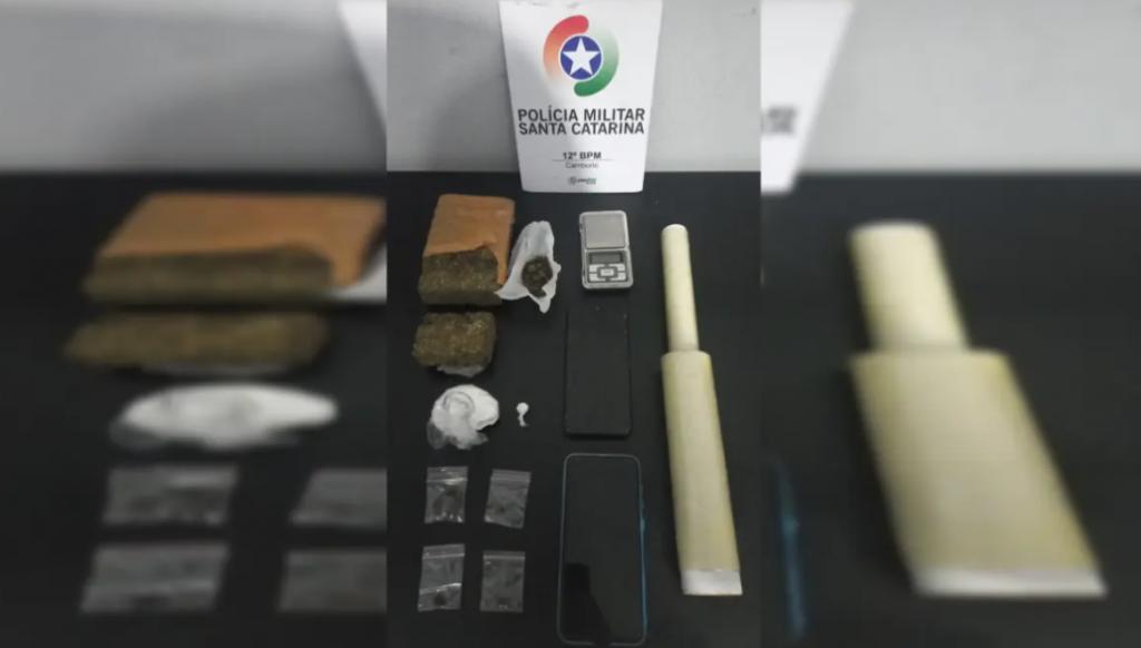 No endereço indicado, os policiais constataram a presença da criança desacompanhada de qualquer responsável legal. Durante as buscas na residência, foram apreendidos cerca de 385 gramas de maconha, 66 gramas de cocaína, 4,7 gramas de haxixe, além de uma balança de precisão, rolos de plástico filme e dois aparelhos celulares.